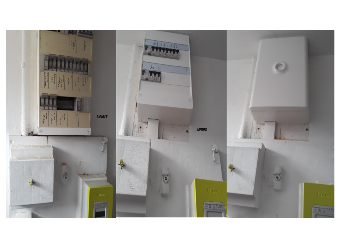 Remplacement du tableau électrique existant par un tableau équipé des protections différentielle et des disjoncteur de protection des départs électriques, identification des circuits électriques.